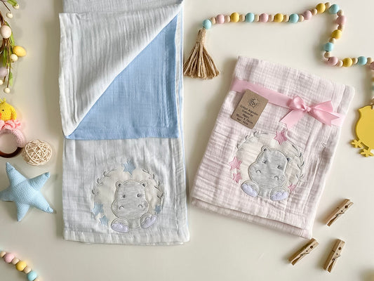 Elefantico Soñador Celeste – Cobijita Doble Faz en Algodón con Bordado