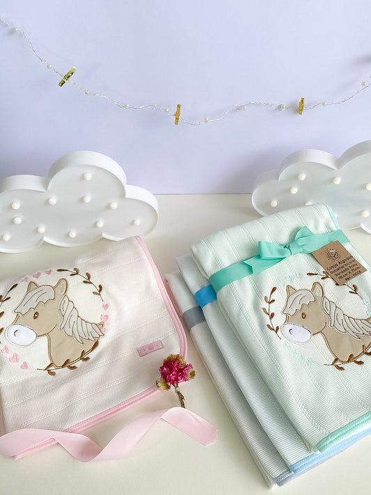 Carrusel de Sueños Menta - Cobija Pony Bordada Doble Faz