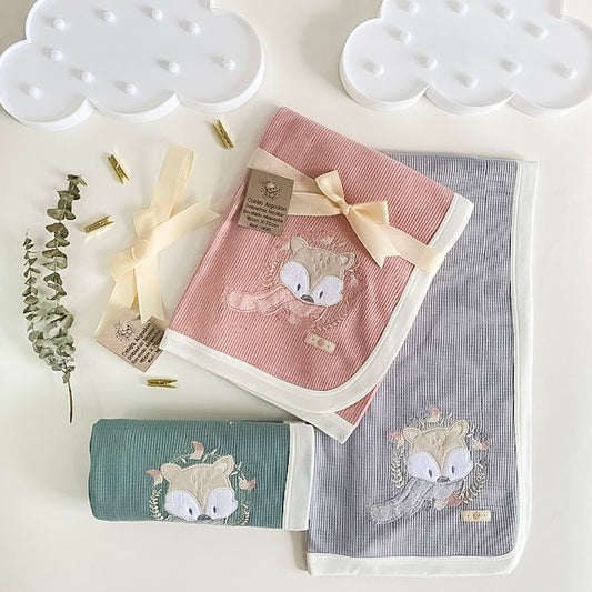 Suave Amiguito del Bosque Gris - Cobija Mapache Bordada Doble Faz