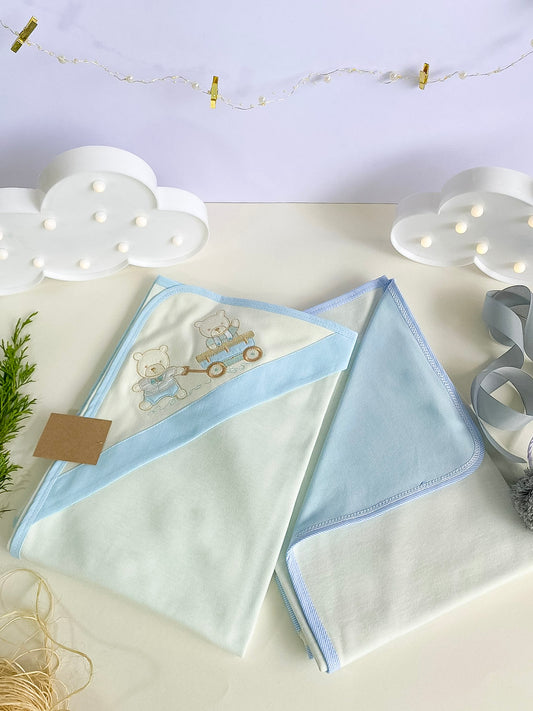 Sueños de Osito Celeste - Cobija Oso Teddy con Capota