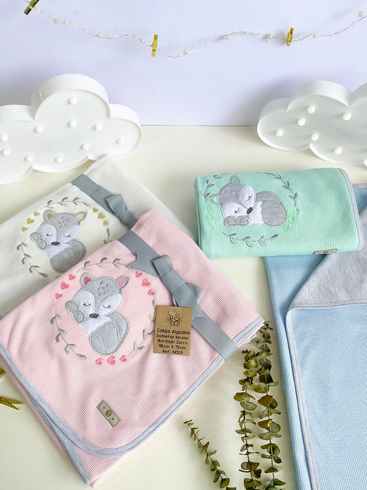 Guardian del Bosque Menta - Cobija Zorro Bordada Doble Faz