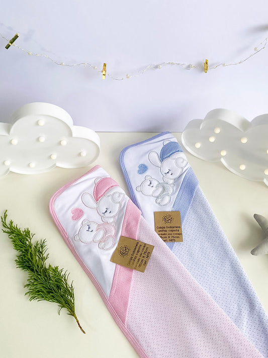Abrazos del Bosque Celeste - Cobija Conejo-Oso Bordada y Capota