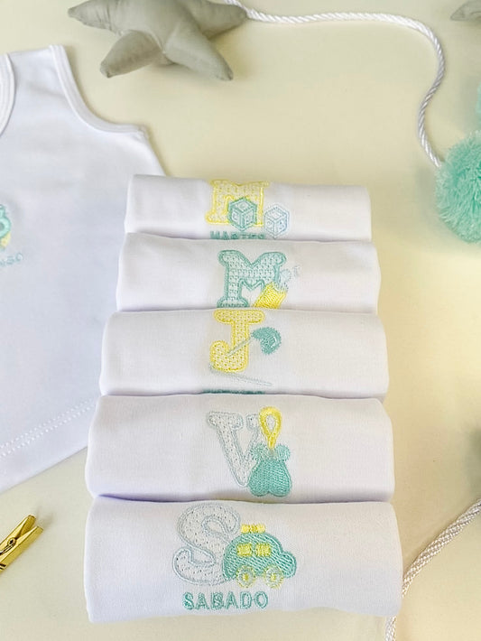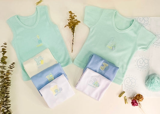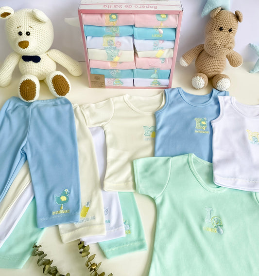 Dulces Animalitos: Set Semanario 16 Piezas Estampado Celeste Verde
