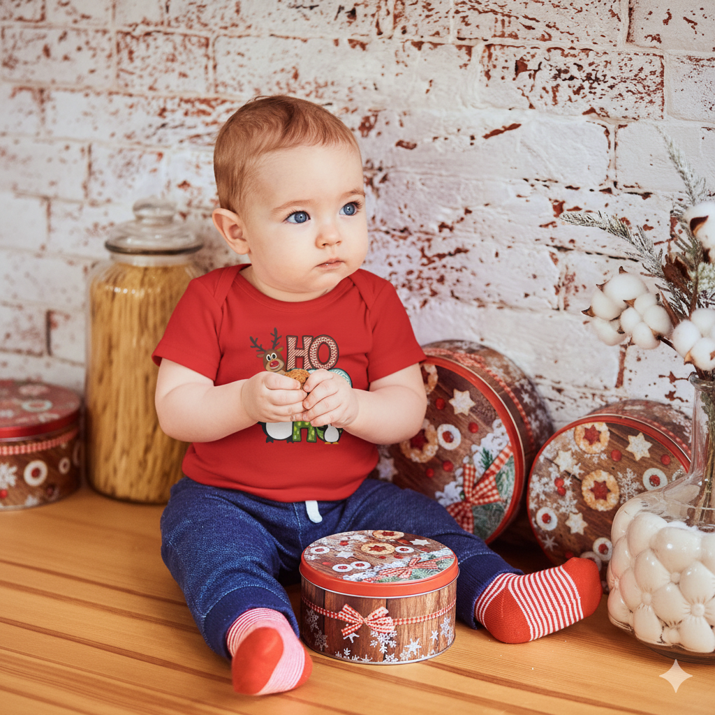 ¡Celebra la primera Navidad de tu bebé con estilo con nuestro hermoso Body Navideño! De un vibrante color rojo y blanco que evoca la alegría de la temporada, este divertido Body con el letrero "¡Ho Ho Ho!" será la pieza perfecta para vestir a tu pequeño y compartir momentos inolvidables en familia.